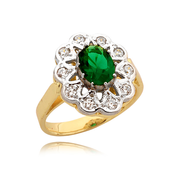 Złoty pierścionek zaręczynowy lub na specjalną okazję. Podana cena jest ceną orientacyjną, jest zależna od wagi pierścionka oraz wartości rynkowej złota. Cena obejmuje kamienie syntetyczne. Biżuteria z kamieniami szlachetnymi jest wyceniana indywidualnie. Przed złożeniem zamówienia drogą internetową prosimy o kontakt telefoniczny 504 244 170. Czas realizacji to 21 dni roboczych. W naszym salonie w Żywcu dostępne pierścionki do przymiarki.